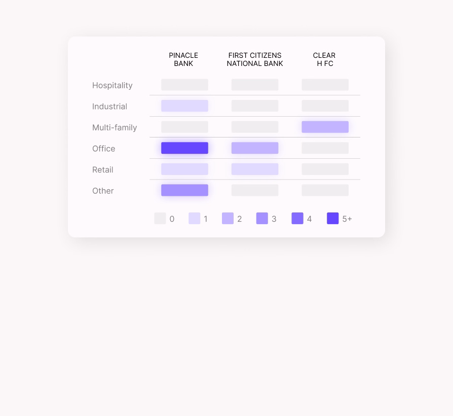 Understand which lenders are most active in your markets and where you can compete or differentiate.